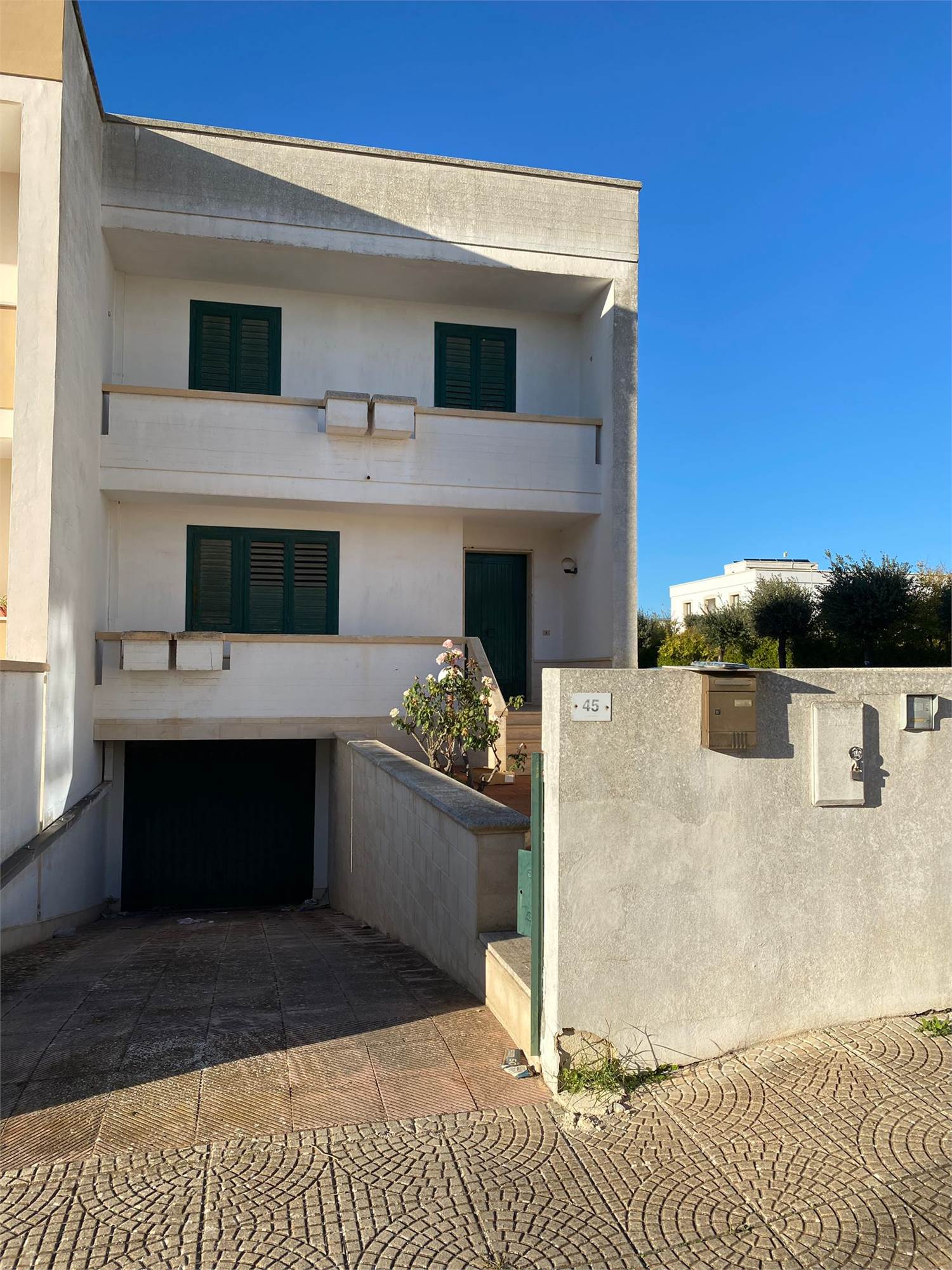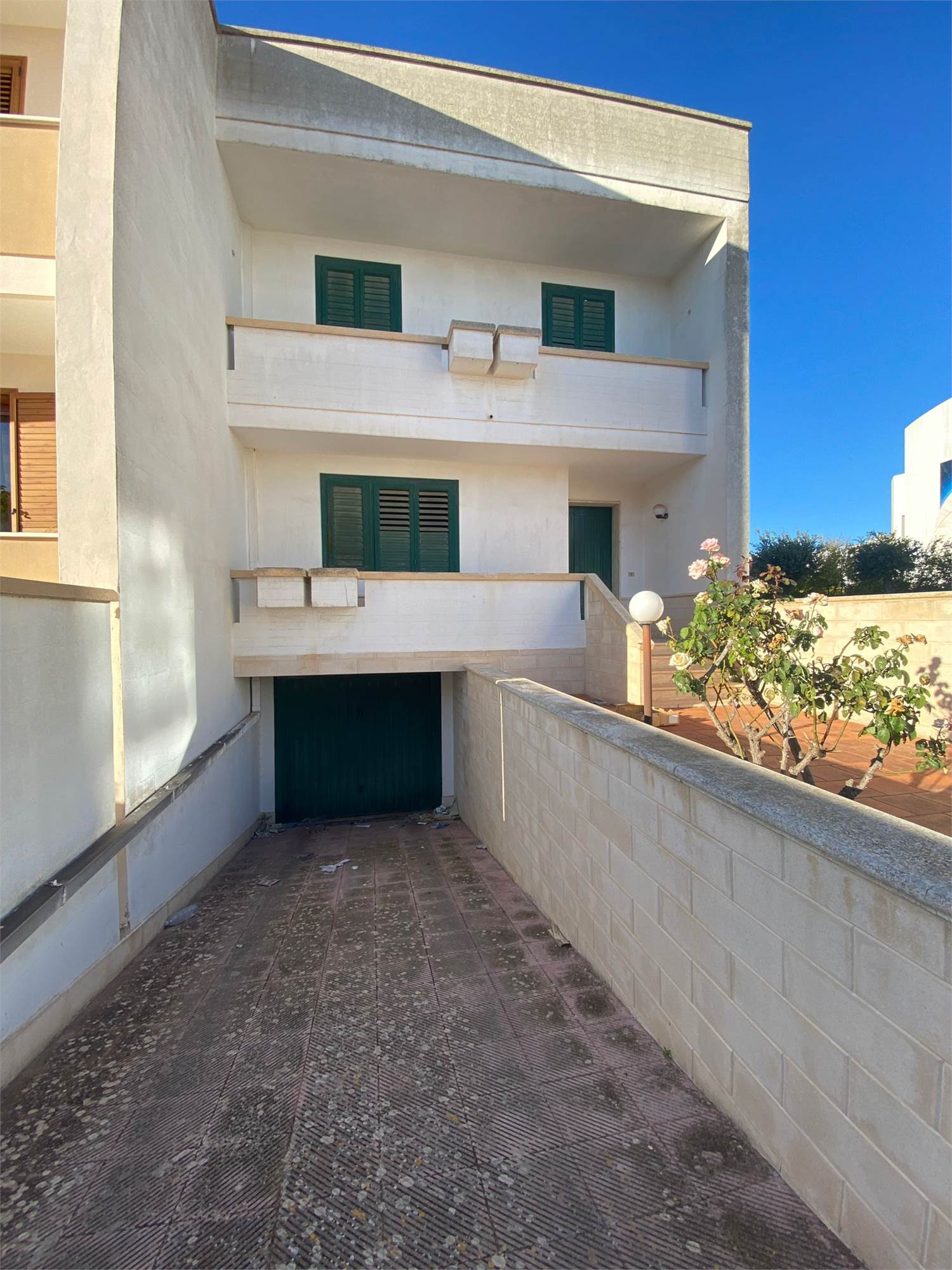 In contrada pietra bianca a Casarano proponiamo una splendida villetta a schiera in posizione angolare La villetta è composta al piano terra da un ampio salone, una cucina abitabile ed un bagno oltre a giardino di esclusiva pertinenza e balcone, al piano terra tre camere da letto di cui due con balcone privato e bagno La terrazza è di esclusiva pertinenza e al piano interrato vi è un comodissimo box auto La villetta non necessita di alcun lavoro di ristrutturazione ideale per chi desidera vivere nella piena tranquillità di una zona semi periferica è e di avere un'abitazione indipendente con giardino e box auto privato. L'abitazione ha tutti gli allacci acquedotto fognatura e metano.