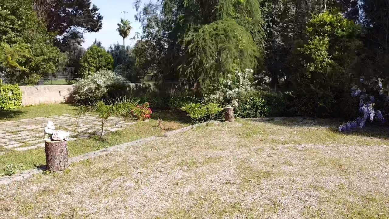 La proprietà sorge su un generoso lotto di *3.300 m²*. Il giardino, curato e lussureggiante, è un tripudio di piante ornamentali e alberi ad alto fusto che garantiscono privacy e ombra rinfrescante nelle giornate estive.