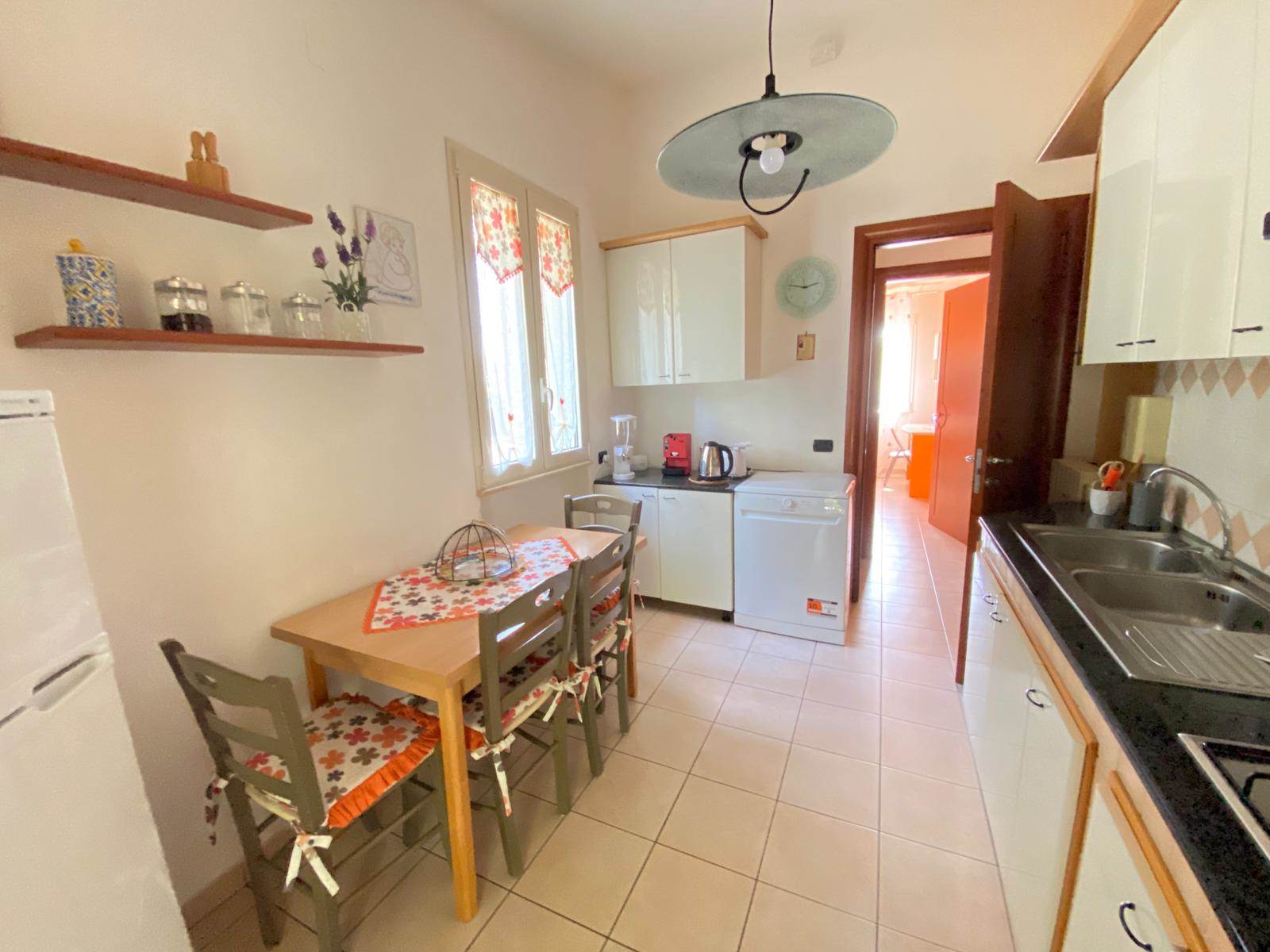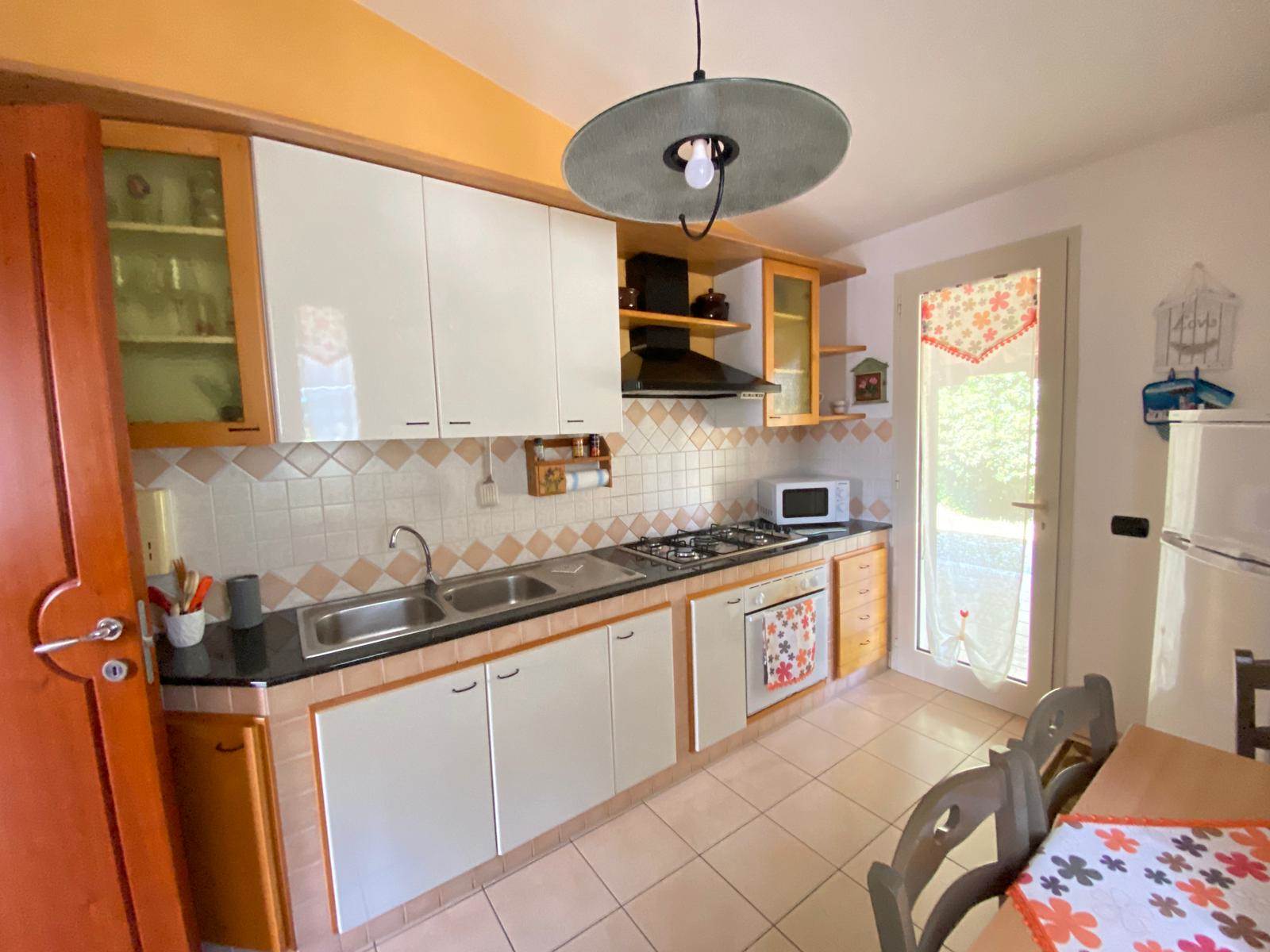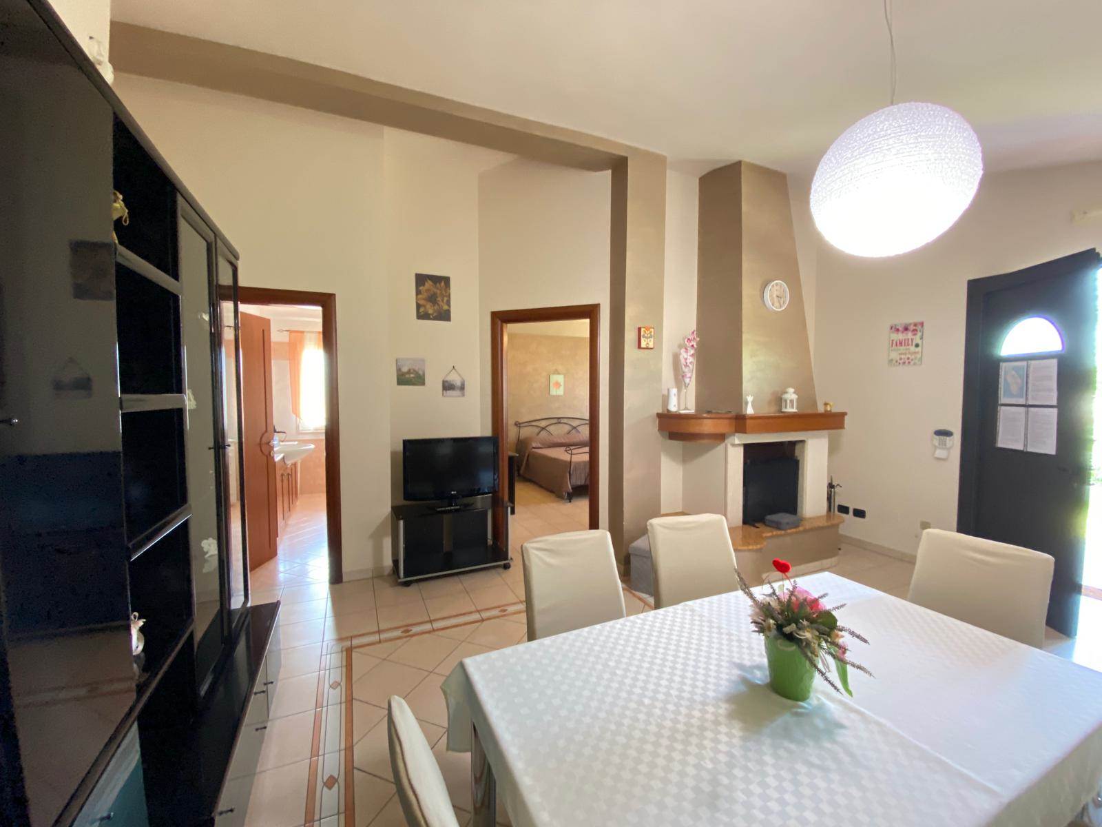 Un accogliente soggiorno con camino , ideali per momenti di relax o convivialità, completati da una *cucina abitabile* intima e funzionale.