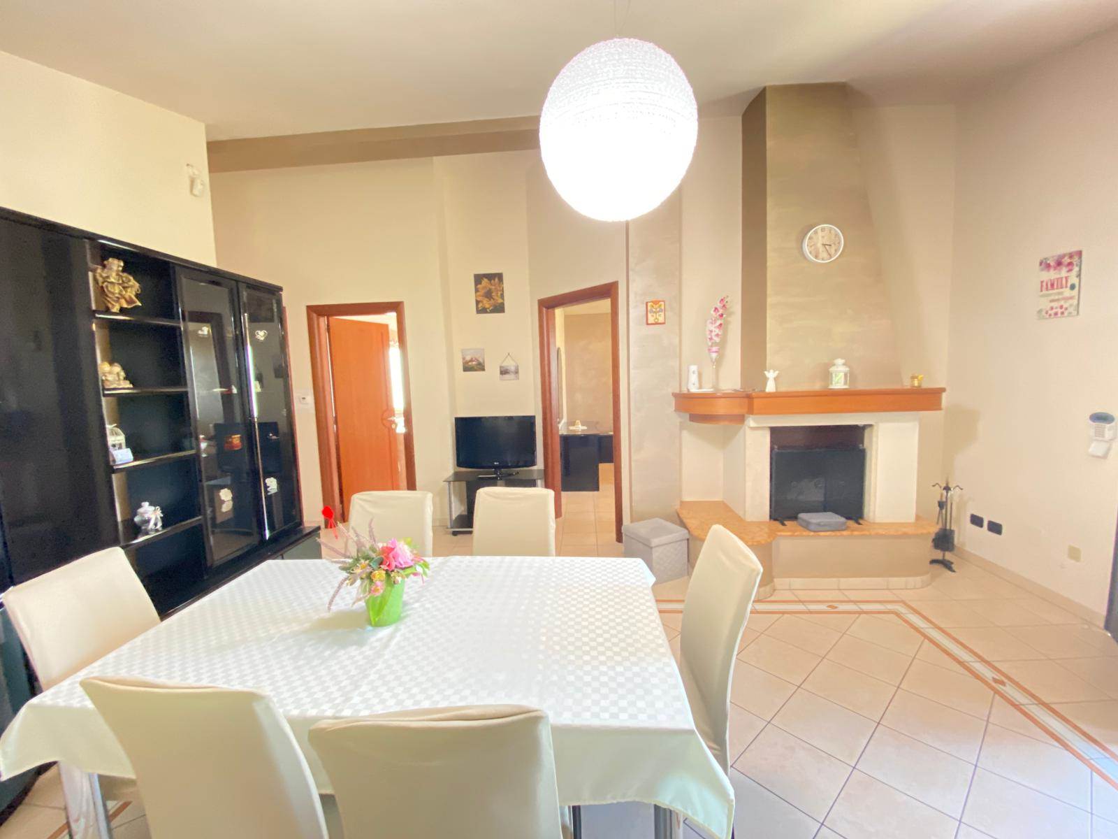 Un accogliente soggiorno con camino , ideali per momenti di relax o convivialità, completati da una *cucina abitabile* intima e funzionale.
